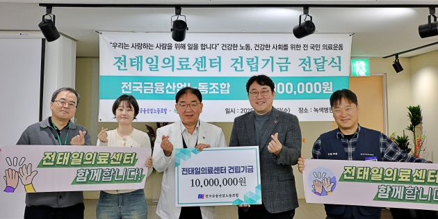 금융노조가 11월 5일(수), 일하는 사람들을 위한 병원인 전태일의료센터에 건립기금 1천만 원을 전달했다. 이번 후원은 노동자의 건강권 보장과 사회적 연대를 실천하기 위한 금융노조 사회공헌 활동의 일환이다.