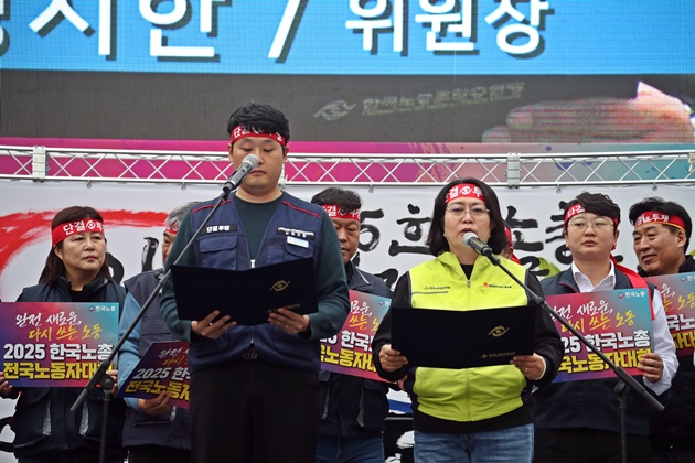 마지막으로 “강력한 투쟁, 치밀한 협상, 굳건한 연대를 무기 삼아 150만 조합원 동지들의 힘으로 노동존중사회를 반드시 실현하자”는 다짐으로 결의문을 마무리했다.