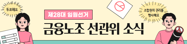 각 지부에서는 10만 금융노동자 조합원들이 제28대 금융노조 임원선거에 관심 가질 수 있도록 적극 홍보해주시기를 당부드린다.